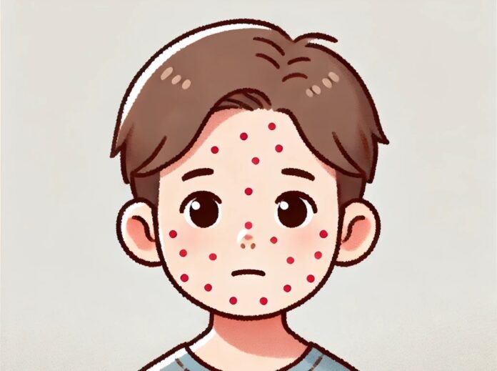 İlk belirtiler genellikle ateş, hafif baş ağrısı, yorgunluk, boğaz ağrısı ve iştahsızlık gibi grip benzeri belirtilerdir . Bu ilk semptomları hızla kırmızı ve sivilceli bir döküntü izler . Noktalar hızla sivilce gibi görünen sıvı dolu kabarcıklara dönüşür .