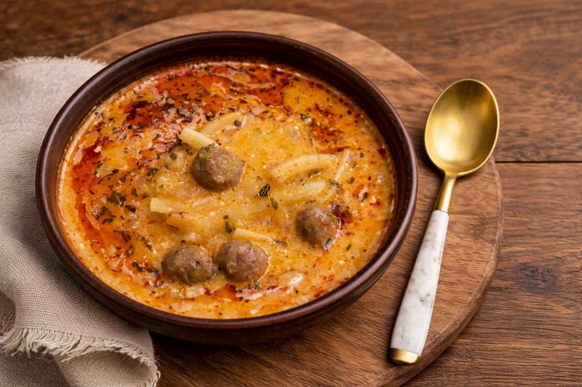 Erzincan mutfağının en doyurucu ve köklü çorbalarından biri olan Erzincan çorbası, özellikle soğuk günlerde hem besleyici hem de iç ısıtan bir lezzet sunar. Dövmelik buğday, erişte ve köftelerin bir araya gelmesiyle ortaya çıkan bu çorba; tek başına ana öğün olabilecek kadar güçlüdür. Salçalı ve tereyağlı aromasıyla sofrada kendini hemen belli ederken, üzerine gezdirilen pul biberli tereyağıyla da geleneksel tadını tamamlar. Sabır isteyen ama sonucuyla emeğe değen bir yöresel çorbadır.
