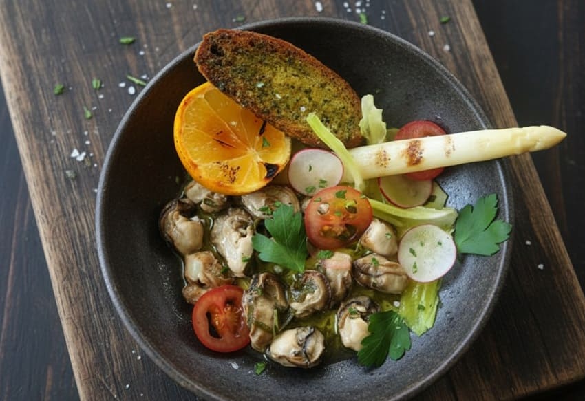 Ocaktan almaya yakın limon suyu eklenir ve tencere kapatılır. İstiridye pilaki oda sıcaklığında dinlendirilir. Servis sırasında üzerine ince kıyılmış maydanoz serpilerek soğuk veya ılık şekilde sunulur. Bu tarif, istiridyenin doğal tadını koruyan hafif ve zarif bir deniz ürünü yemeği olarak öne çıkar.