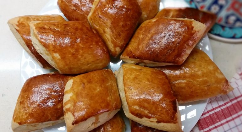 Dinlenen, kabaran ve kıvamına gelen hamurdan istediğiniz büyüklükte olacak şekilde parçalar koparın. Elinizde toparlayıp tezgahın üzerine alın. Önce rulo haline getirin. Sonrada elinizle üzerine hafif hafif bastırarak uzun bir dikdörtgen haline getirin. İstediğiniz ölçüde verev kesin. Yağlanmış fırın tepsisine yerleştirdiğiniz peksimetlerin üzerine çırpılmış yumurta sarısı sürün. Tepside de 15-20 dakika mayalanmasını bekleyip, sonra 200 dereceye ayarlanmış fırında üzerleri kızarıncaya kadar 50 dakika pişirin.