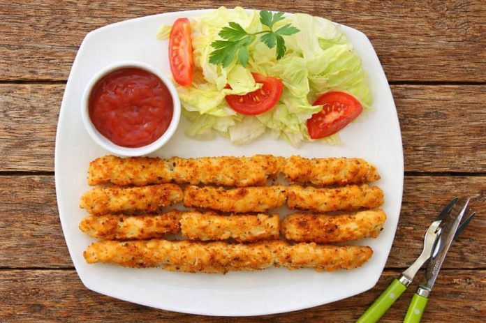 Derin bir tavada sıvı yağı kızdırın. Yağ yeterince ısındığında tavuklu çubukları dikkatlice yağa bırakın ve orta ateşte, sık sık çevirerek altın sarısı renk alana kadar kızartın. Kızaran tavukları kağıt havlu serilmiş bir tabağa alarak fazla yağını süzdürün.